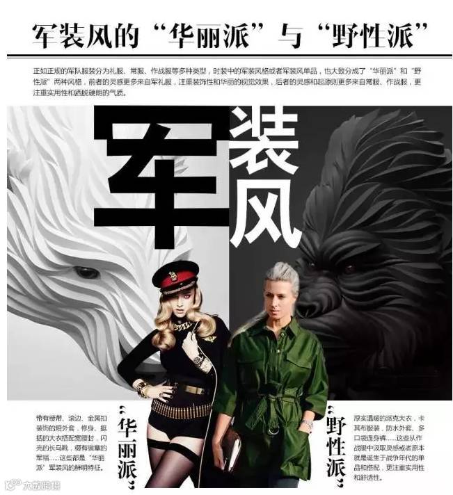 就在9月,著名超模Magdalena Frackowiak为墨西哥版Vogue杂志拍摄的一组军系制服大片,向世界昭告,这一元素再一次成为主流。