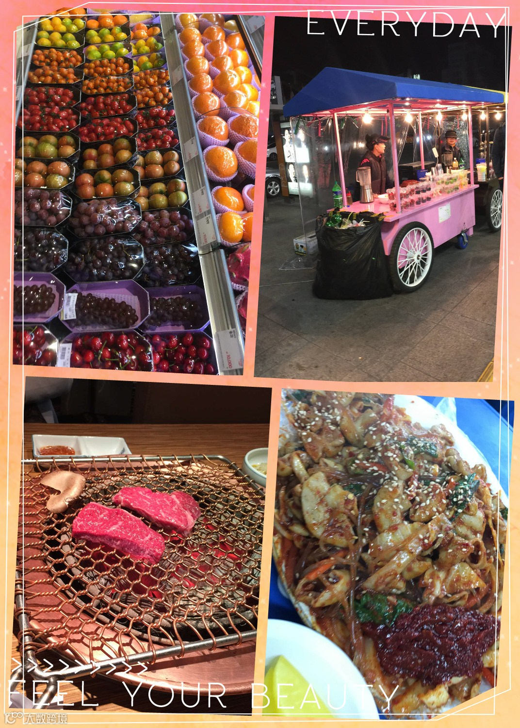 下了飞机,先来大吃一顿。韩国是美味天堂,从韩餐、中餐到西餐,各种帐篷摊子(流动车辆小吃摊)售卖的食品, 既可以站在摊边吃,也可以打包带回家吃,因为价格合理,种类齐全且量多而深受青年人的喜爱。 该类小吃摊在梨大、新村、弘大等大学密集地区或狎鸥亭、钟路、明洞、江南站等购物街上常常可以见到。每个季节还有不同的时令美味,比如夏季的刨冰、冬季的热汤和紫菜包饭、糖饼等。