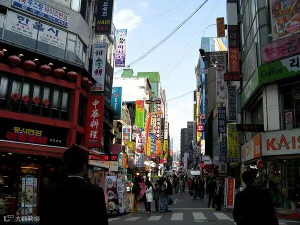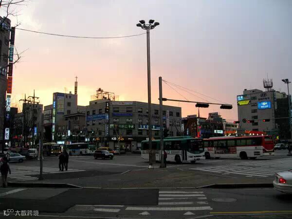 傍晚的首尔街头,韩国人民有着良好的社会秩序和文明程度。