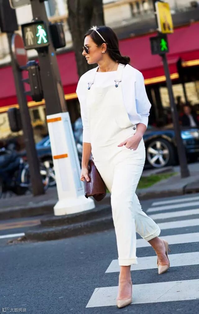 下雨天怕穿白?如果你不在北京的话,还是可以尝试下滴,这样就不用怕泥点子拉!宽松款的连身裤的造型,只需简单的搭配,一块方巾、一双高跟鞋即可。