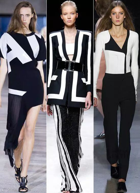 秀场上以黑、白拼色诠释几何图形,大大增强了时装的视觉冲击力!