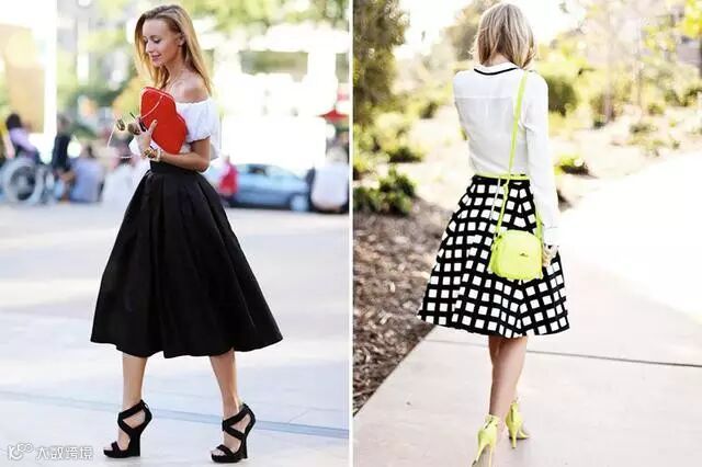 黑白的穿搭看起来容易变得平平无奇,只要加入亮色或色彩鲜艳的的手袋或是鞋子,即时为造型画龙点睛!