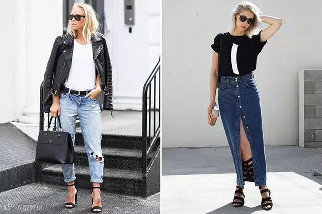 黑白色的打扮,看起来了无生气;今年就尝试一下和同是经典的牛仔单品搭配,会碰撞出不错又时髦的休闲造型!