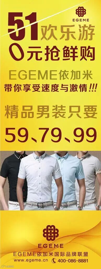 EGEME依加米精品男装上新,限时折扣,期待您的光临!