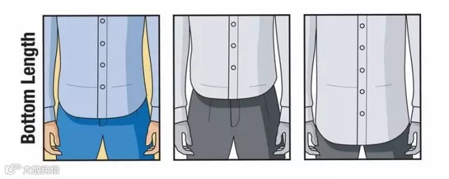 7.衣摆:刚好可以盖住裤裆一半的高度是最刚好的尺寸,太长或太短都会不太好看。这样才是合身。