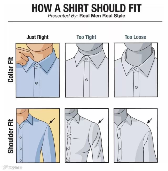 1.领子:可以放入一根手指的宽度,才是最恰当的。太紧或是太宽都不合适。当然如果是一些更加专页的衬衫,会分领宽就更能记住你自己的尺寸了。