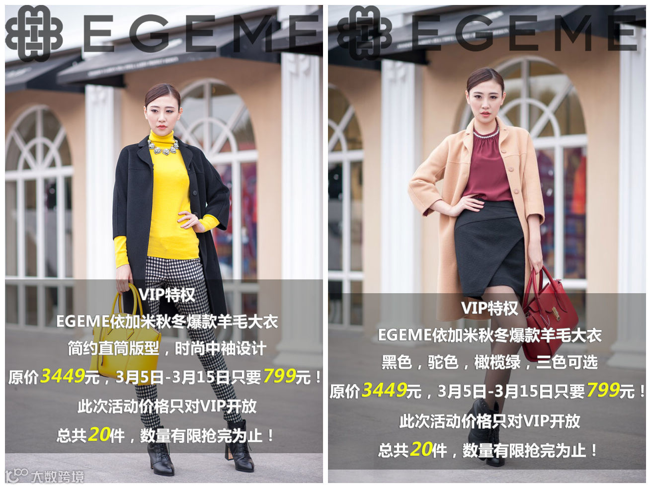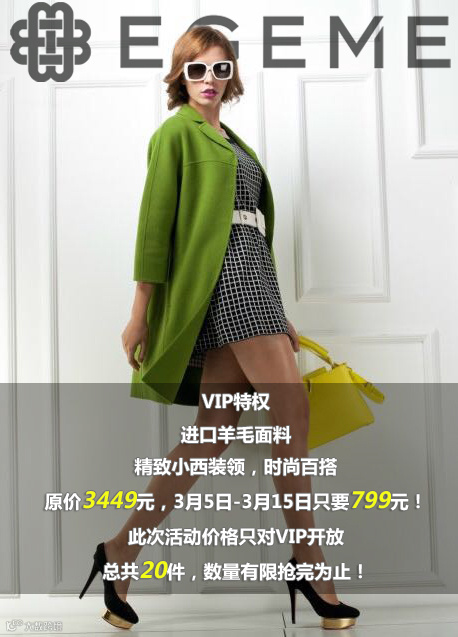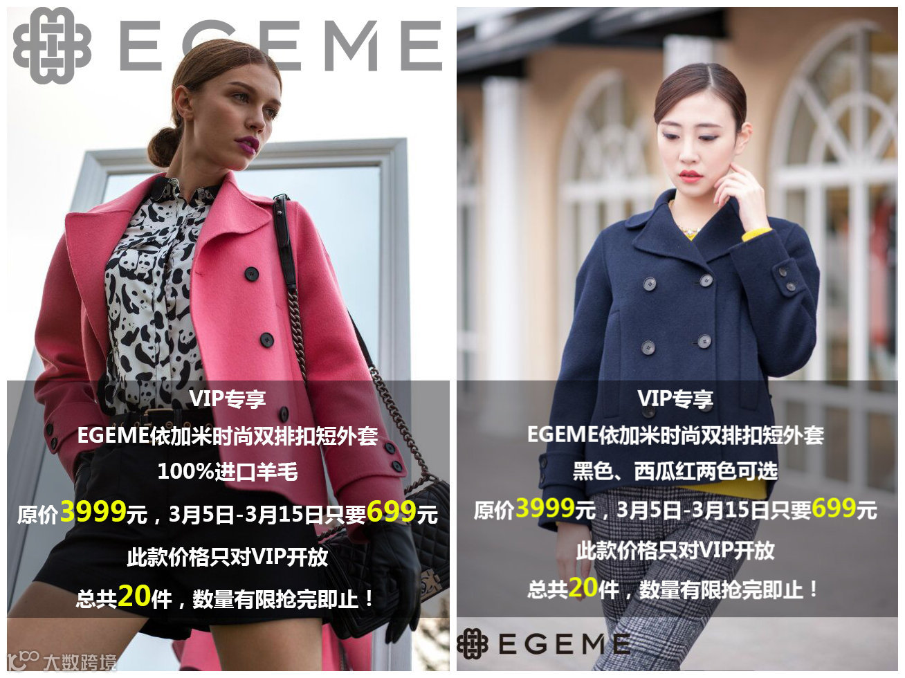 时尚双排扣羊毛短外套699元