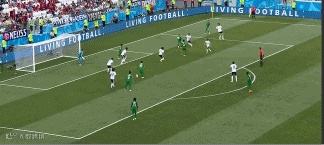74分钟,沙特开出前场右路定位球,法拉杰直接将球踢上了看台。沙特多次远射机会都是各种离谱打高。