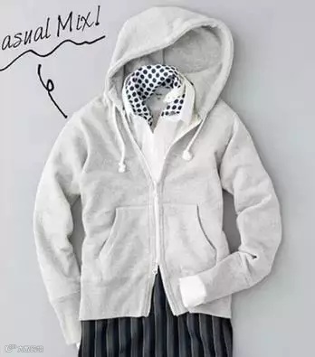 风格17:普通的连帽卫衣搭配,以领口处若隐若现的围巾做亮点