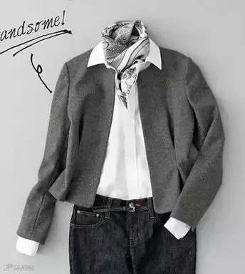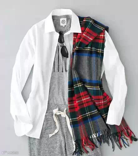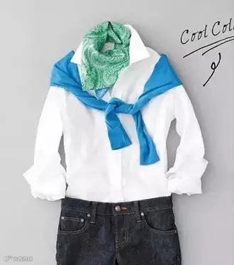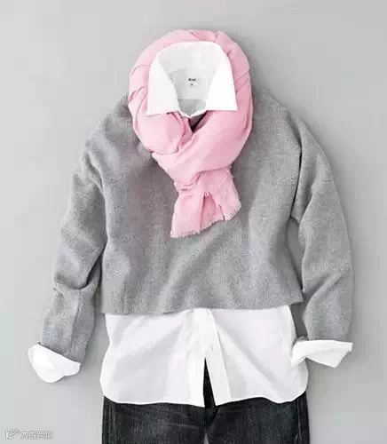 风格12:衬衫外搭短款毛衣的普通搭配,柔和的亮色系围巾可以让眼前一亮