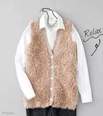 风格13:外搭毛绒绒的背心,能让整个人看上去更温柔