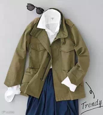 风格11:外搭军装夹克,下身用素色的长裙平衡过于硬朗的风格