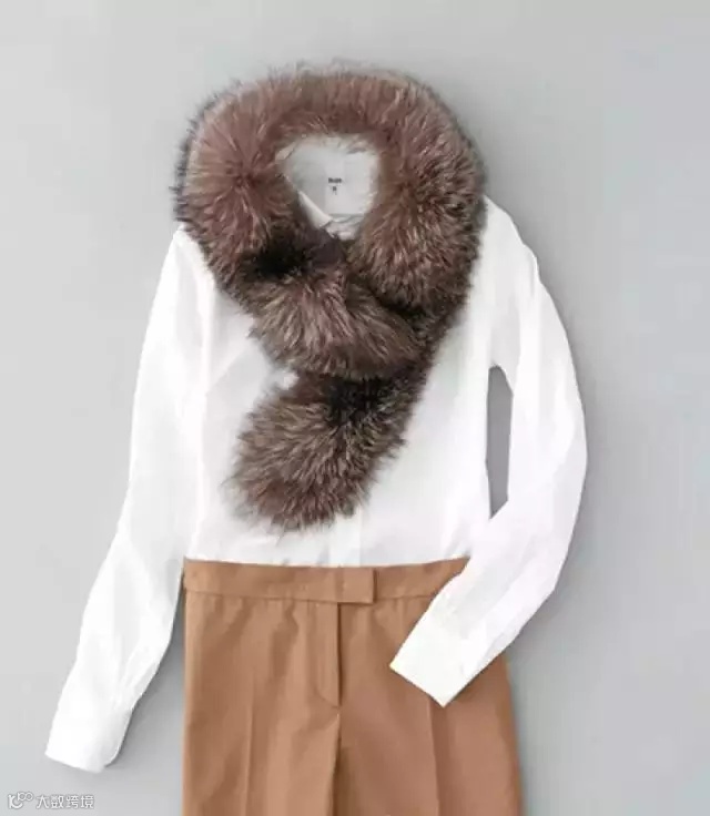 风格16:皮草围领和棉质衬衫的搭配,能冲撞出不一样的风格