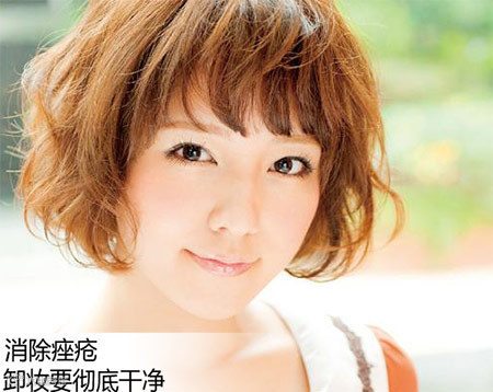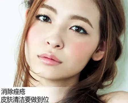 使用具有防止紫外线的防晒粉底,并且记得睡前务必彻底卸妆,否则油脂会塞住毛孔,长出痤疮,第二天早上也不可只用水匆忙洗洗脸就算了,当然还可以适度地去角质,替肌肤按摩按摩。