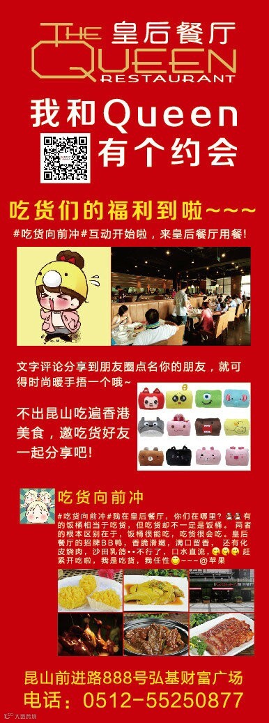 吃货们的福利到啦~~~~ #吃货向前冲# 互动开始啦,来到皇后餐厅用餐,微信文字评论分享到朋友圈点名你的朋友,就可以得时尚暖手捂一个哦!