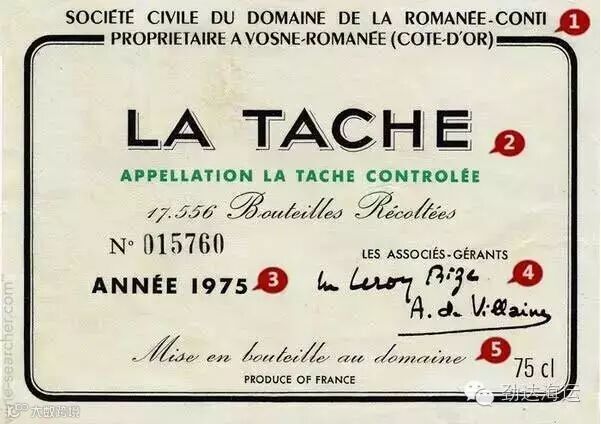 ② La Tache:产区(葡萄园)信息。La Tache是一片特级园,这样的特级园在