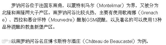 北罗纳河谷气候较凉爽,红葡萄酒主要有西拉(Syrah)红葡萄酒酿造和维欧尼(Viognier)白葡萄酒。酒标上来看,最醒目位置标注的仍然是产区信息。