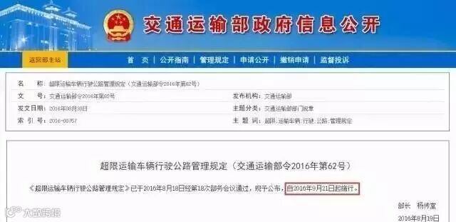 《超限运输车辆行驶公路管理规定》将于2016年9月21日起施行,相比原标准,新标准在超限方面明显收紧,六轴货车车货总重由原来的55吨降为49吨。意味着,公路货车运输运费单价将会上调。