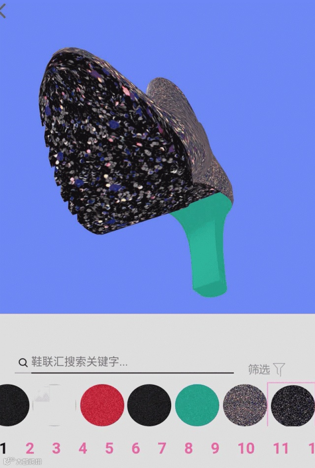 百拉图商城的产品除了首页的爆款设计图外,平台还对VIP客户开放3D模型库,客户可以将任意新款设计替换到鞋模型上,进行拼贴组装后,展现鞋样成品后的直观样子。