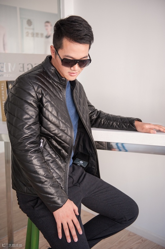 时尚休闲的皮衣,纯绵羊皮,保暖舒适,采用独特的条纹缝纫工艺,休闲又具个性,简洁干练的线条,精致的的立领设计,彰显了男性挺拔的气质形象,是现代男士的必备之选。