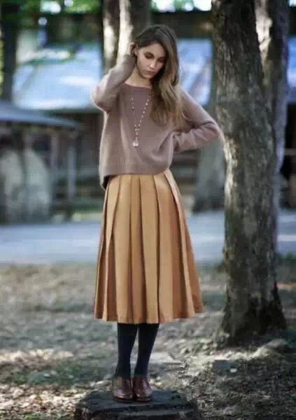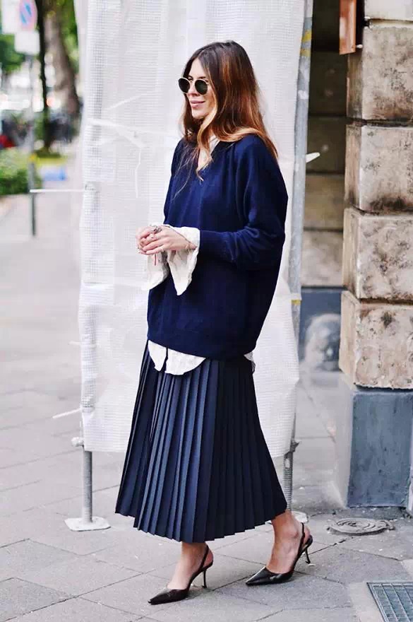 1 想要隐藏小腹?请将百褶裙藏在毛衣内!