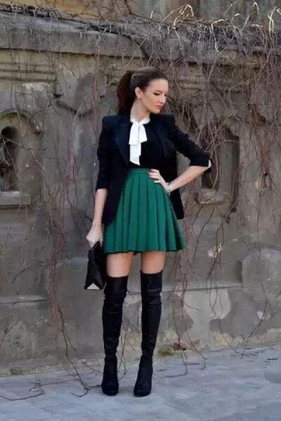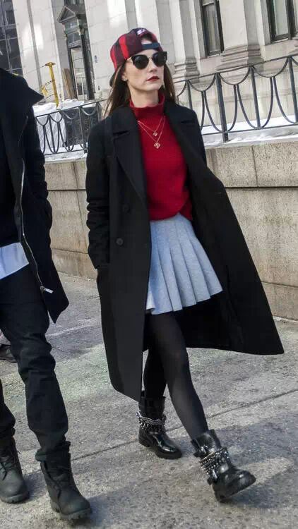 在搭配上的要求没有那么高,无论是长外套或者短外套,短裙以其超强的百搭性成为你最常选择的单品。保守的女生依旧可以选择经典黑色配时下流行的过膝长靴,而追求个性的妹子不妨学Taylor Swift选一条暖暖的姜黄色短裙哦!