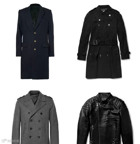 基本的六件外套分别为大衣、风衣、短款双排扣、皮衣、棒球夹克、牛仔夹克,考虑到个人抗寒的程度不一,可自行选购厚度不同的款式。