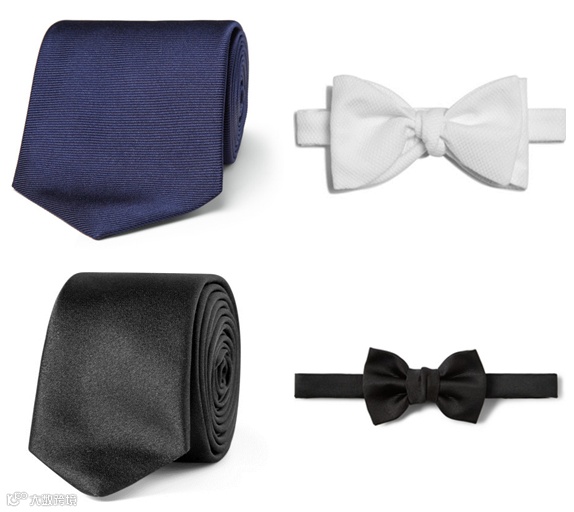 领带领结都要准备,黑白经典款式必须有,此外包括条纹款、格纹款,颜色以无色系与靛色系为主。领带职场生活都适用,领结则是为晚宴、街拍做准备。