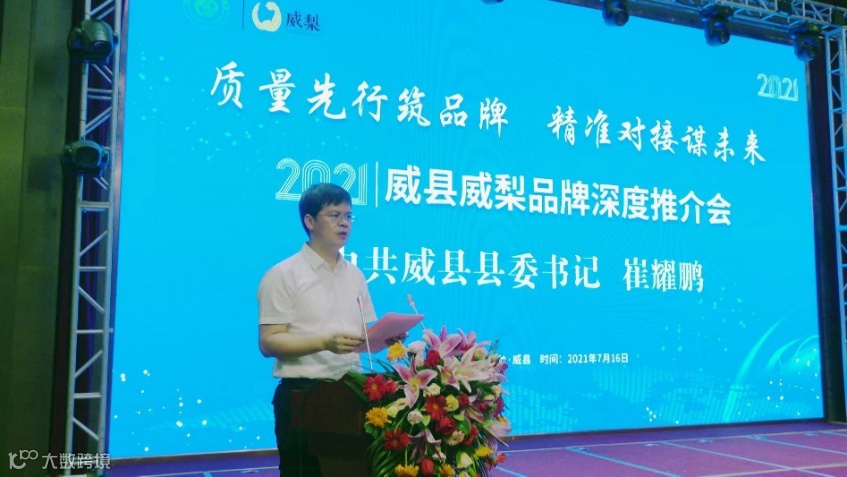 威县县委书记崔耀鹏在致辞中介绍,近年来,威县以农业结构调整为主线,大力发展现代农业、品牌农业,形成以林果、蔬菜、畜禽为主导产业的“三带三园”现代农业格局,建成10万亩绿色高效梨种植基地,标准化梨园200余个,梨果年产量达到12万吨,是全国最大的秋月梨、新梨七号标准化生产基地。威梨产业目标定位准、主栽品种新、栽培模式优、科技支撑强、区域品牌靓、产业链条长,辐射带动10.3万名群众实现增收致富。