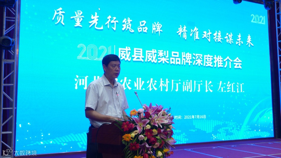 7月15-16日,2021年中国梨产业年会在河北威县举行。中国果品流通协会会长鲁芳校,河北省农业农村厅副厅长左红江,省农业农村厅二级巡视员、特色产业处处长王旗,威县县委书记崔耀鹏等领导出席会议,威县、辛集、晋州、赵县、泊头等河北梨产业集群县相关部门负责人及全国梨生产主管单位、科研院所、梨果经销商、专业合作社、电商等200余人参加本次盛会,全国梨产业相关从业者等通过直播观看现场。