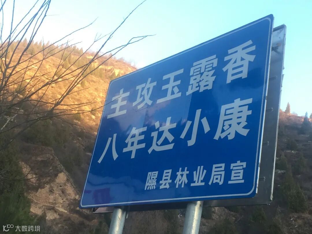 这是当时我在329国道旁边看到的一个牌子,上面写着“主攻玉露香,八年达小康”。改种玉露香梨是隰县的选择。以前隰县主要栽种金梨、酥梨,后来改种了玉露香梨。这是隰县走对的“第一步”。