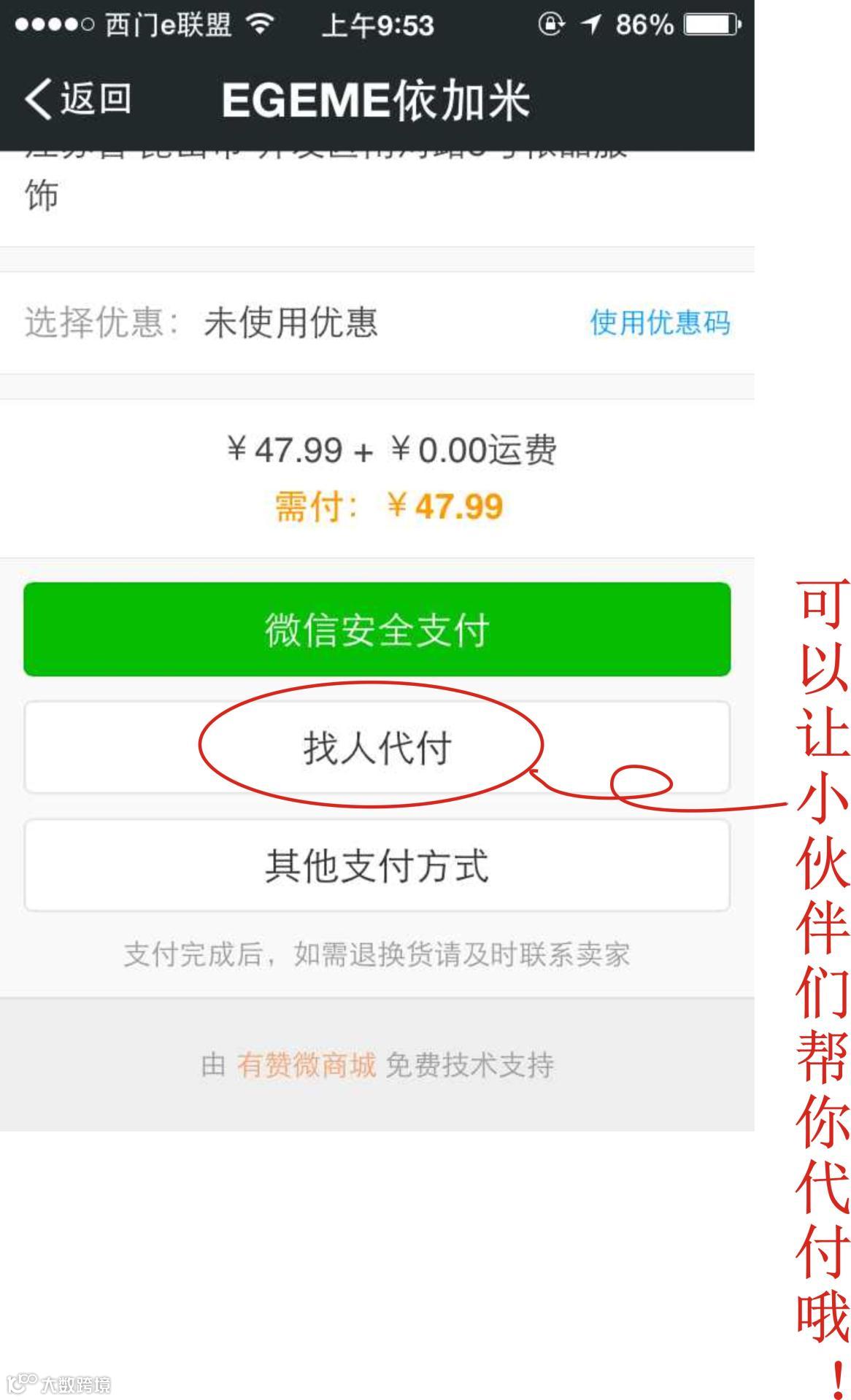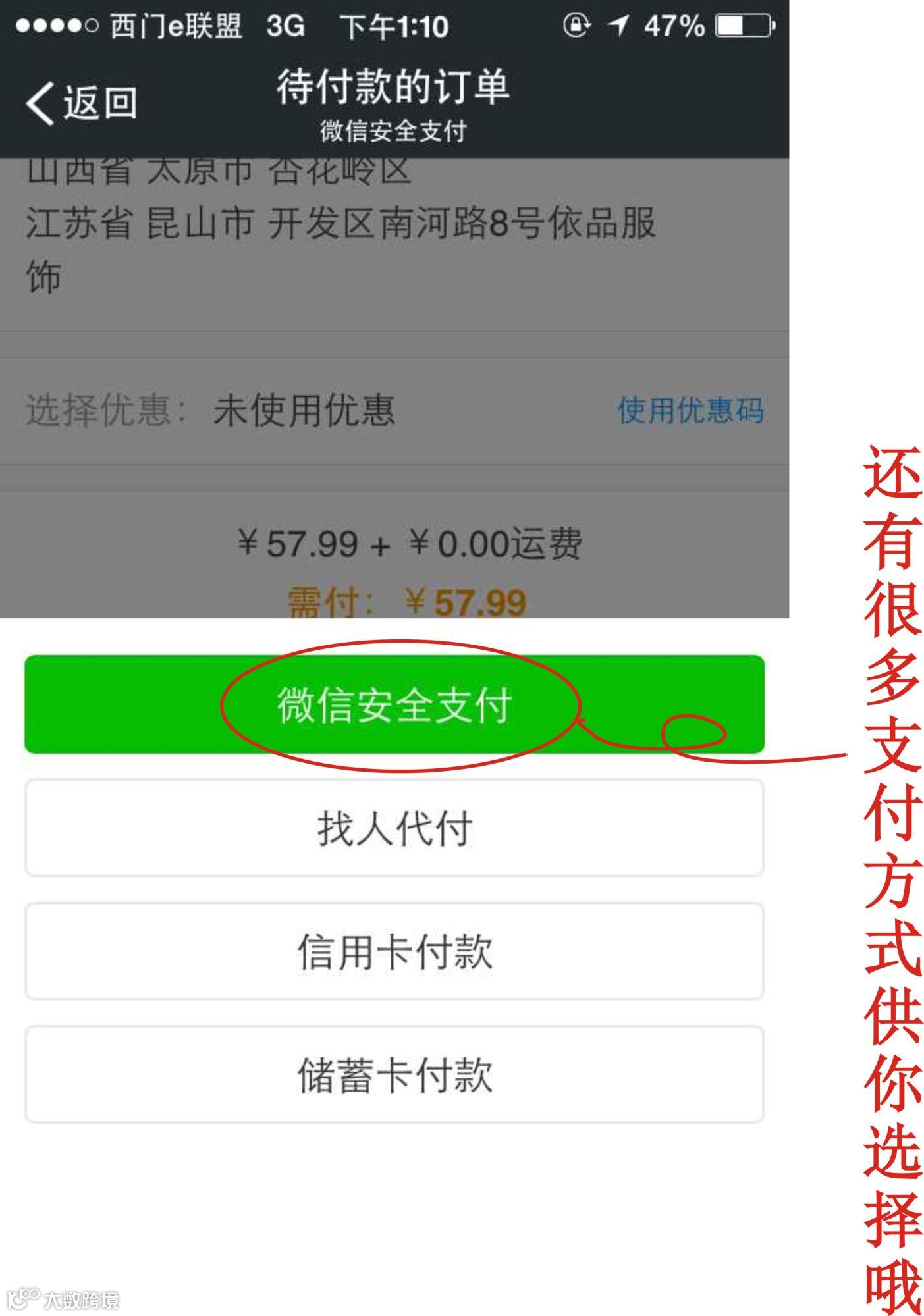 当然,我们还可以选择其他的付款方式,自己支付哦!