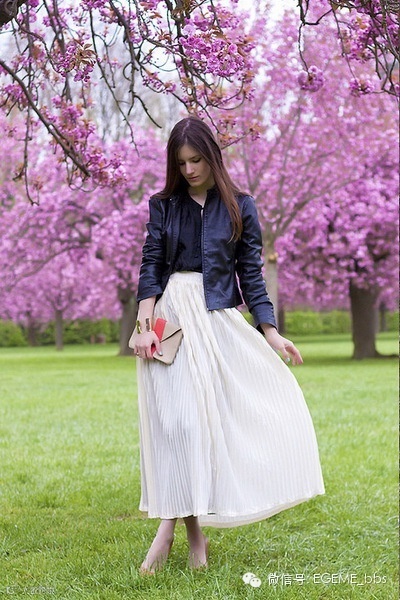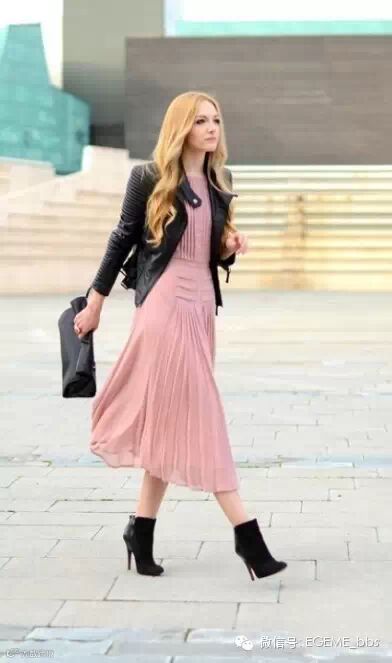 不要以为皮夹克只能穿出酷酷的感觉或是皮夹克的搭配风格窄。皮夹克也算是百搭单品,长裙、短裙、牛仔裤,不同的衣服也能搭出不同风格。