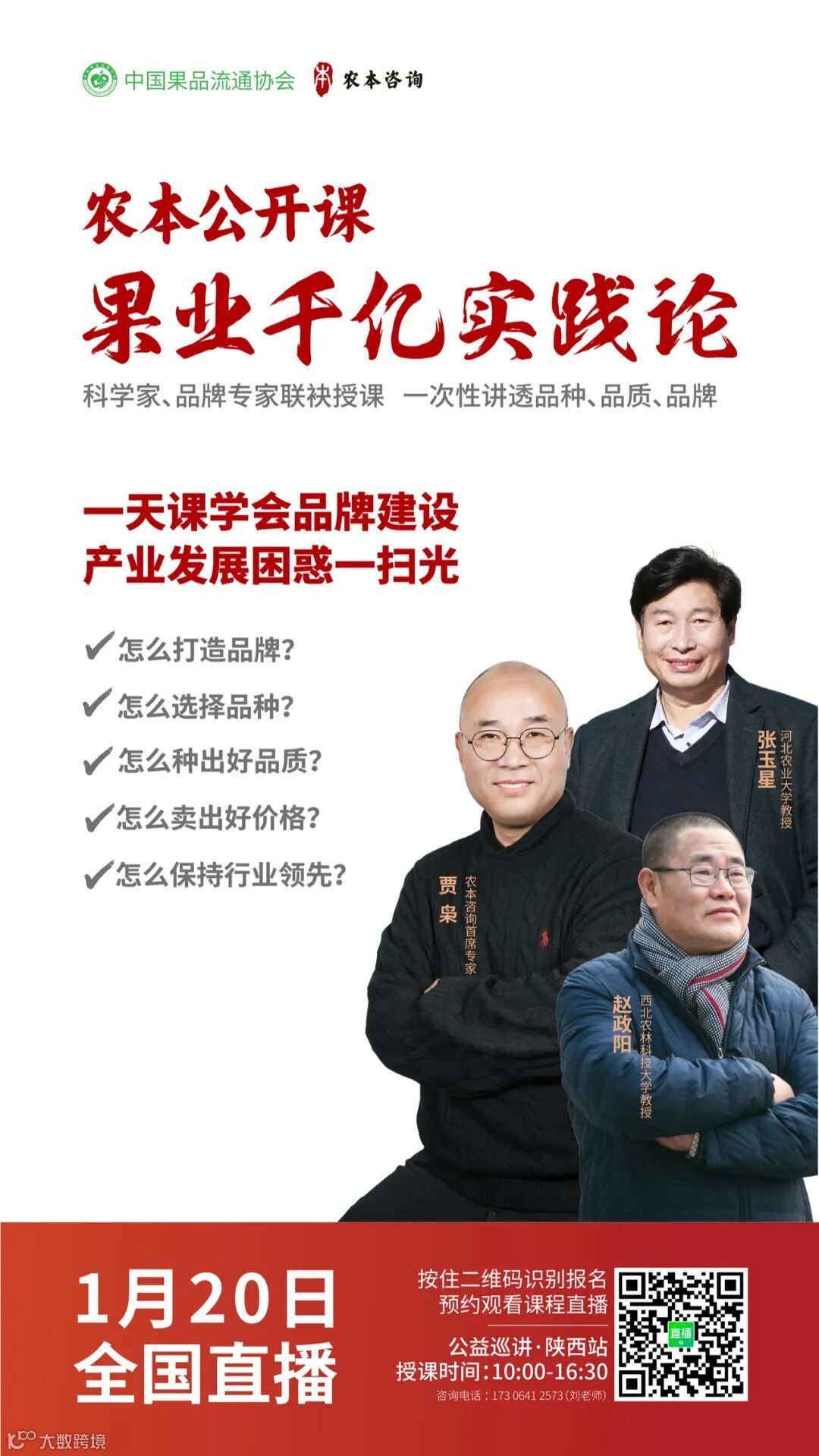 为助推中国果业品牌化,中国果品流通协会、农本咨询联合举办中国果业2021开年大课——农本公开课“果业千亿实践论”,1月20日全国直播。