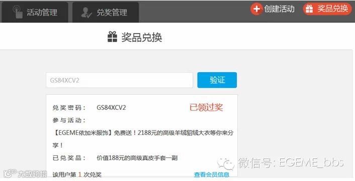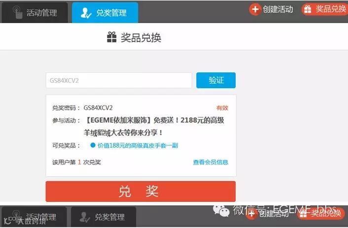 本次活动有专职人员操作软件后台,希望大家耐心操作及配合哦!上图兑奖码为试验码后台验证操作。