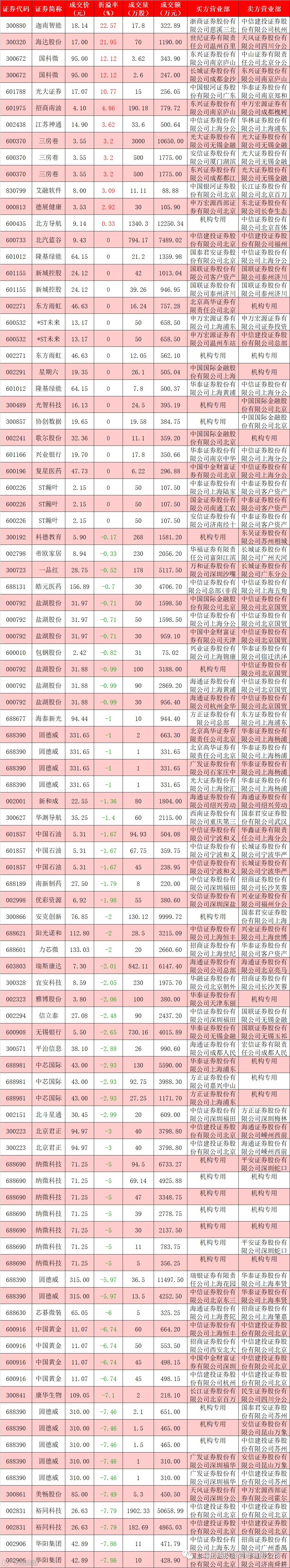 I 每日大宗交易数据统计