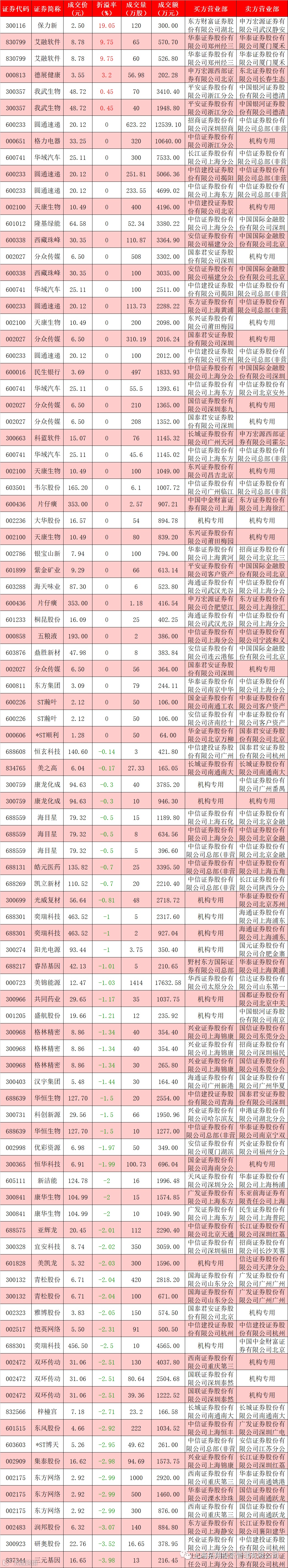 I 每日大宗交易数据统计