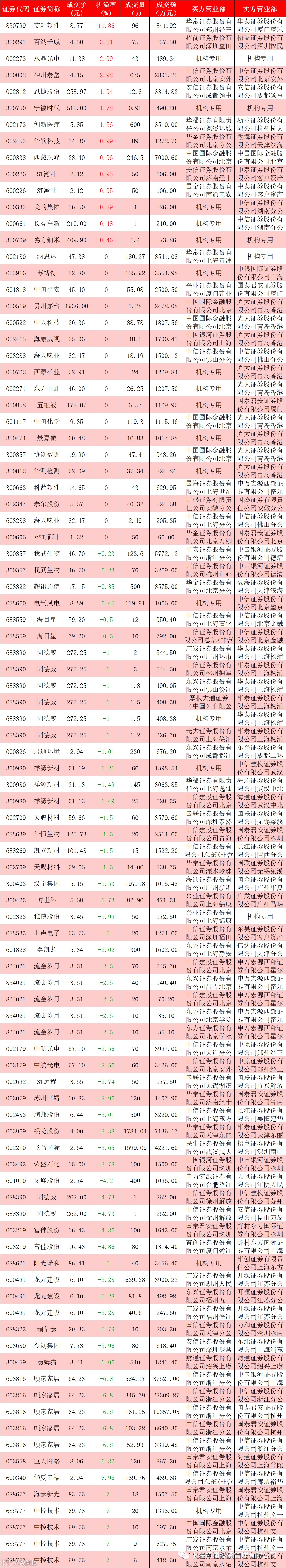 I 每日大宗交易数据统计