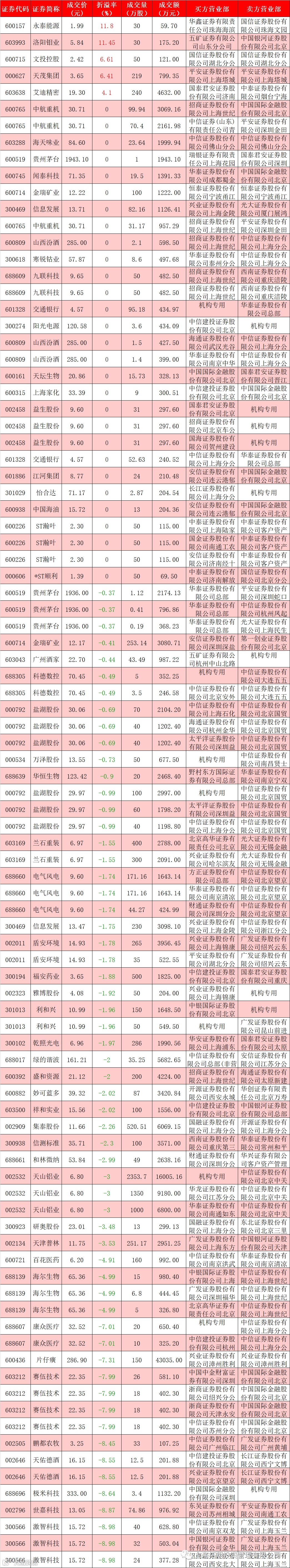 I 每日大宗交易数据统计