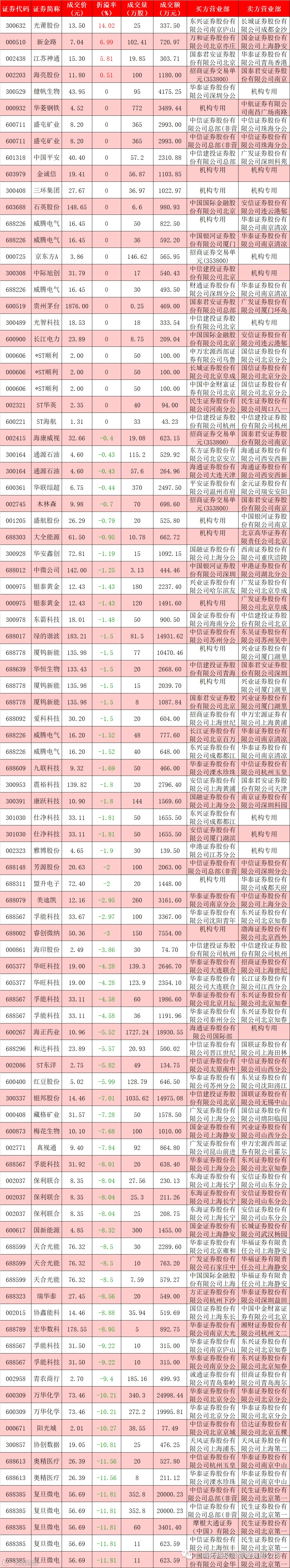 I 每日大宗交易数据统计