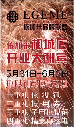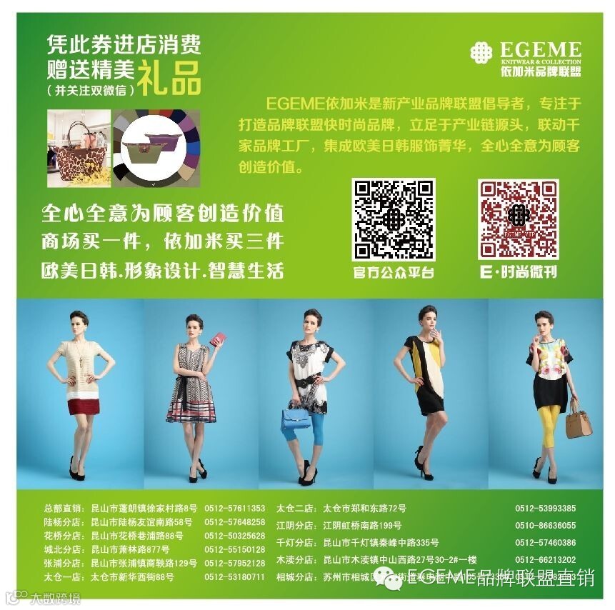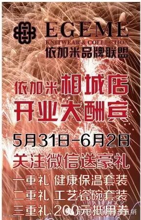 EGEME依加米品牌联盟直销店强势入驻苏州相城区,将于5月31日盛大开业,开业前3天进店就送,