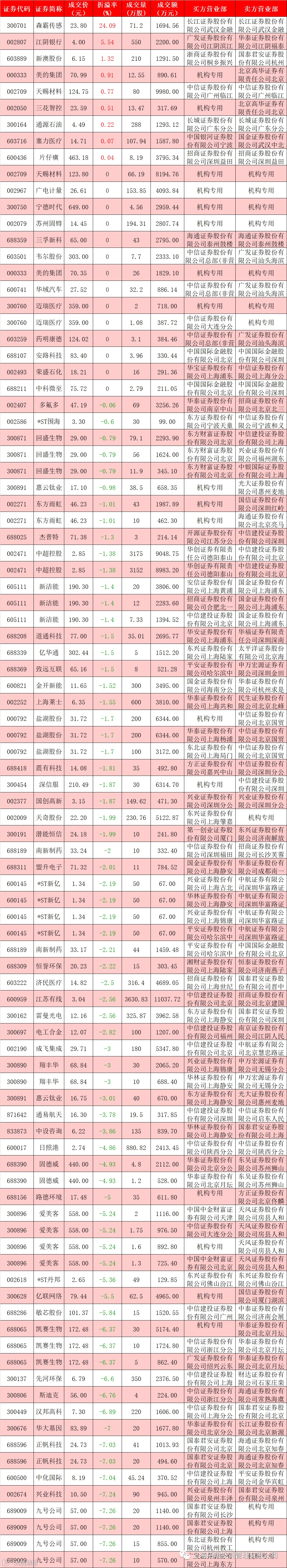 I 每日大宗交易数据统计