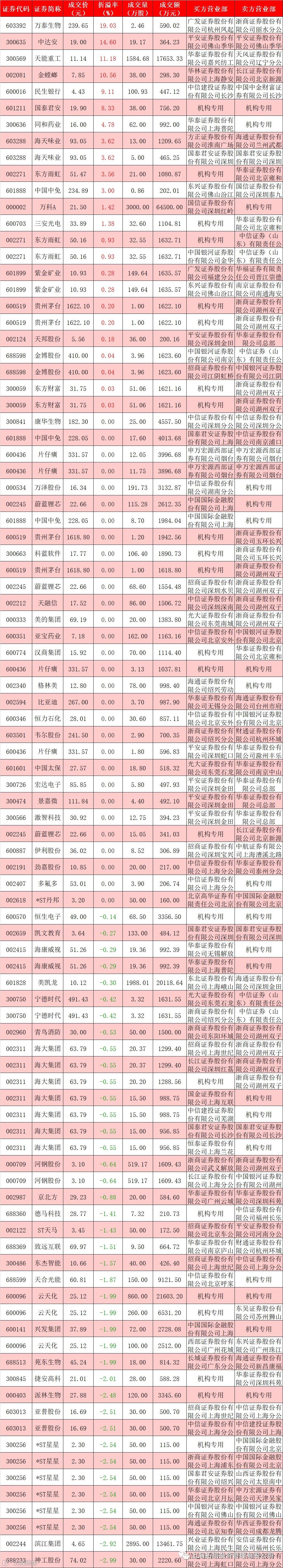 I 每日大宗交易数据统计