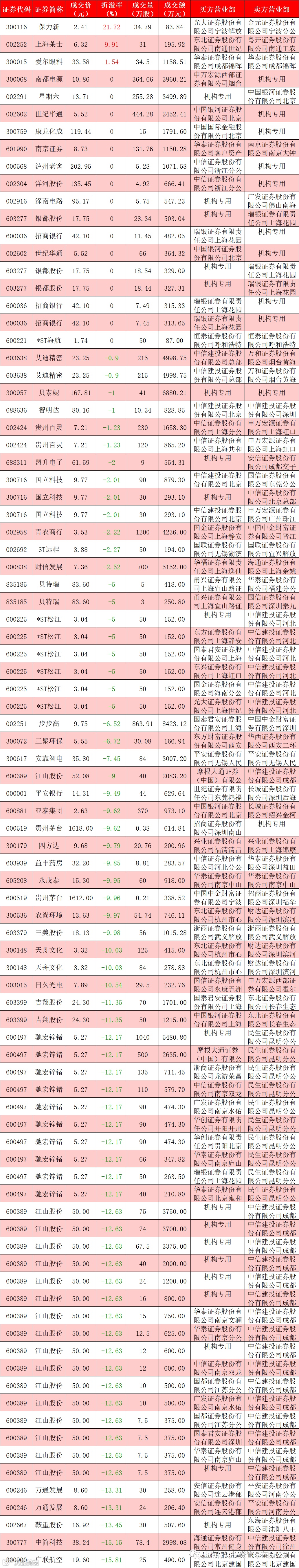 I 每日大宗交易数据统计