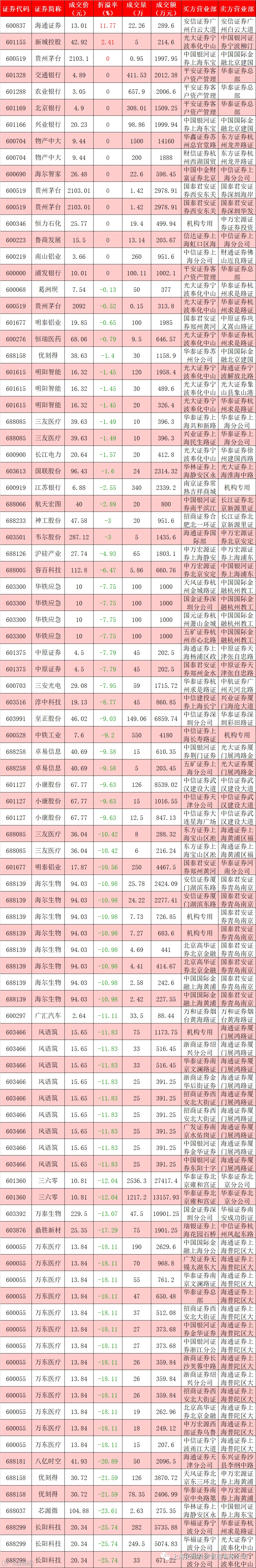 I 每日大宗交易数据统计