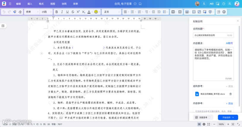 AI智能拟制:提供合同模板,AI辅助生成初稿从源头提升内容质量