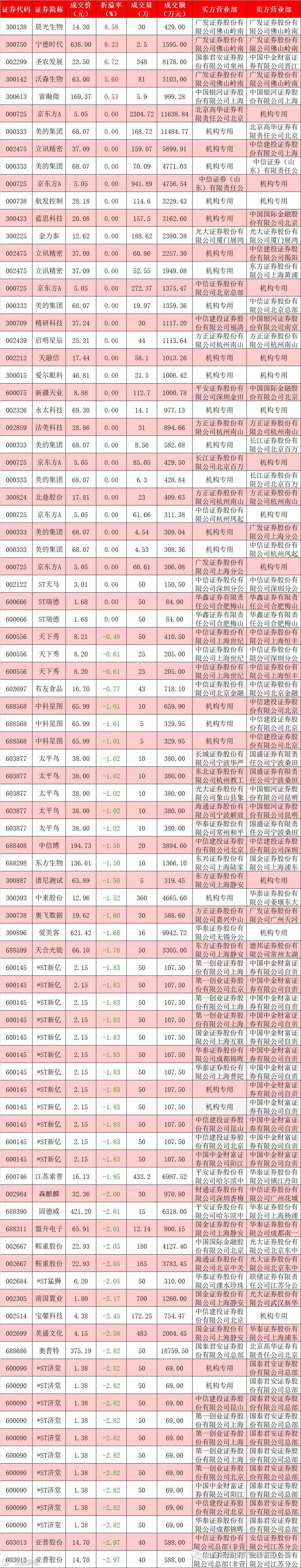 I 每日大宗交易数据统计