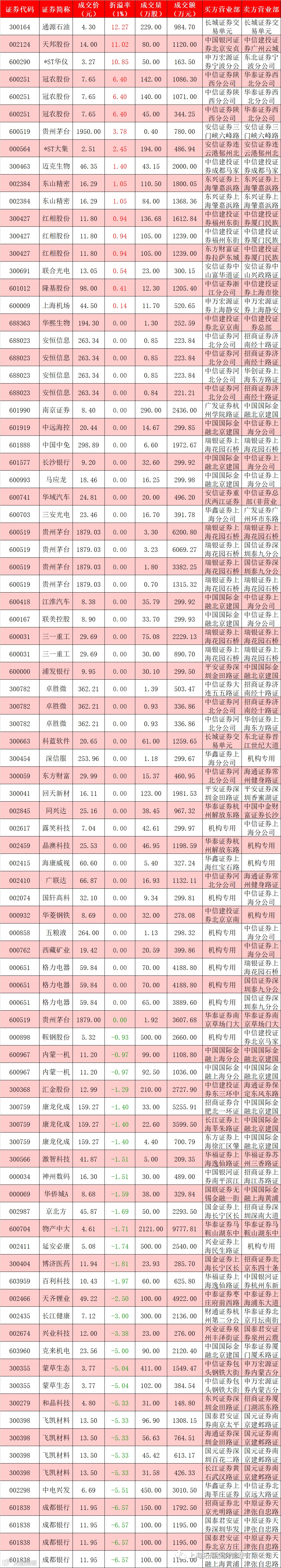 I 每日大宗交易数据统计