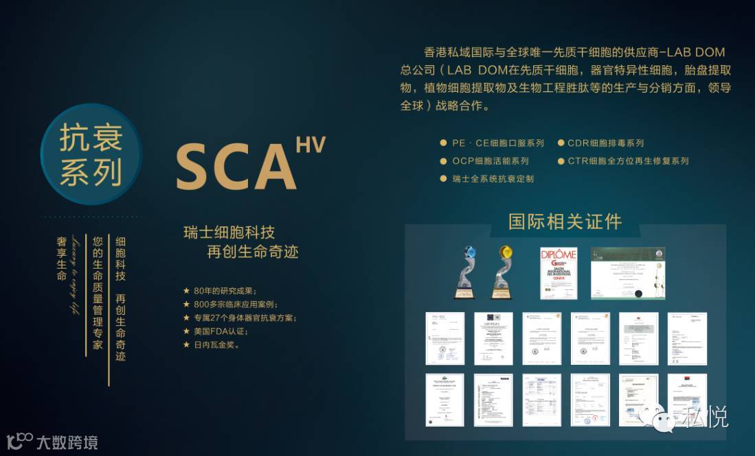 香港私域国际集团与欧洲知名制药企业共同针对中国人体质特征研发,生产细胞系列产品SCA国际品牌。(该企业提供世界多地多种重要药物包括疫苗研发、生产、供应)