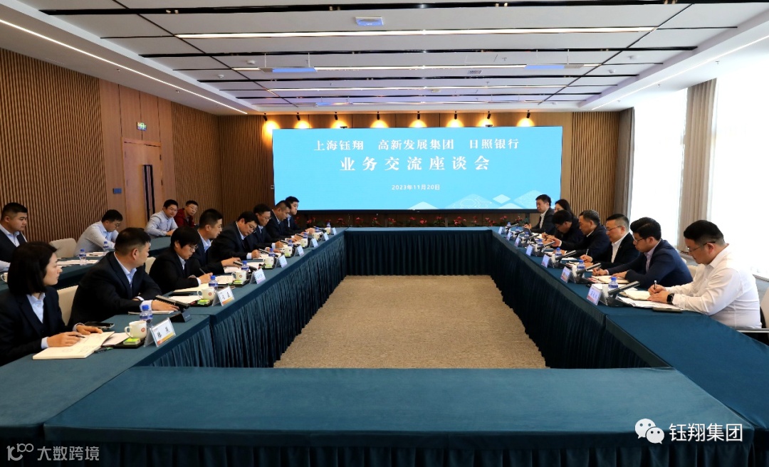 11月20日上午,桂益民董事长一行与日照银行总行杨宝峰董事长举行会谈。在日照银行总部,桂董一行参观了日照银行多个供应链金融应用场景。银企交流会上,袁学礼汇报了钰翔科技集团近年来的经营情况和业务风险把控标准,介绍了双方合作情况和发展前景,希望双方在可复制的科技赋能方面做加强,探讨了山东钰翔续授信相关事项;承办支行日照银行日照高新支行行长宁志文作了回应,并就山东钰翔与日照银行的具体合作情况作了交流;总行小企业金融部、交易银行部、授信审批部、科技部、数字银行部等领导参会交流。